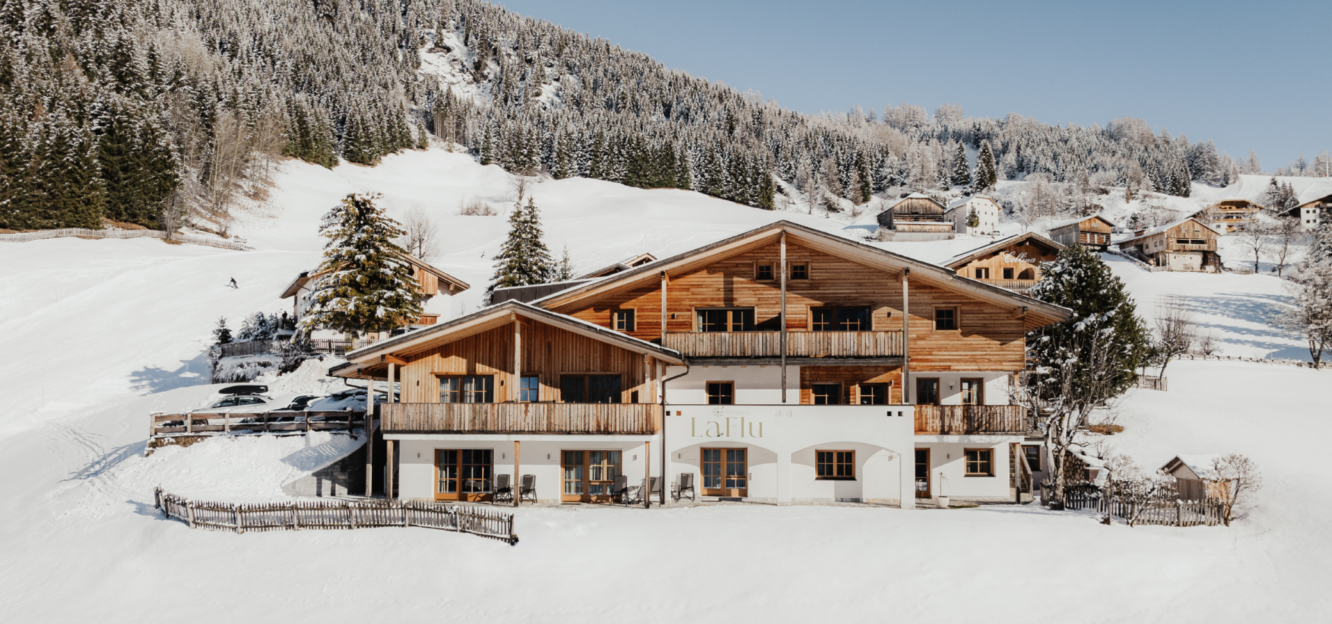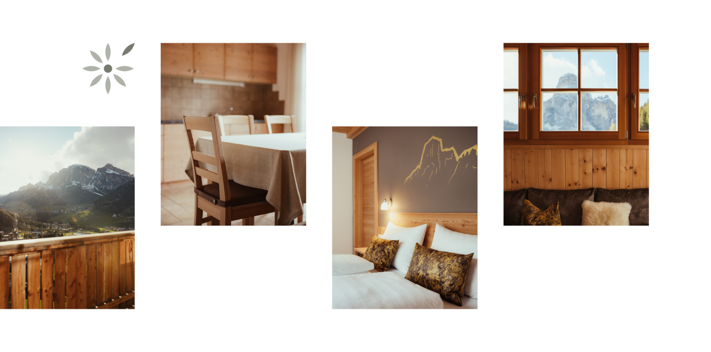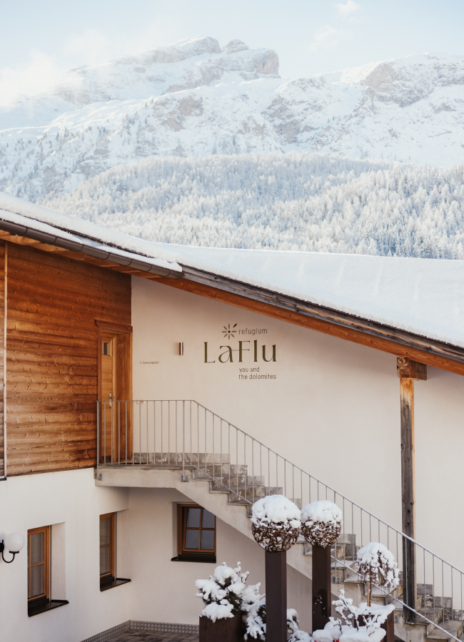 Our holiday apartments, nestled amongst verdant alpine meadows and dense forests, boast a breathtaking panorama of the Dolomites. When you stay with us, you’ll be welcomed with a heartfelt “Bun dé!” – our local greeting for good morning and good day. We take pride in speaking Ladin, a unique and scarcely spoken language. The name of our residence, LaFlu, is also Ladin and translates to “the blossom”. Situated in a sunny spot, LaFlu offers the perfect conditions for blossoming – ample light and space … We want you to experience a similar “blossoming” during your holiday with us.